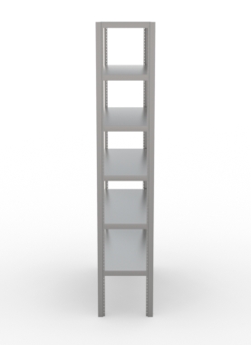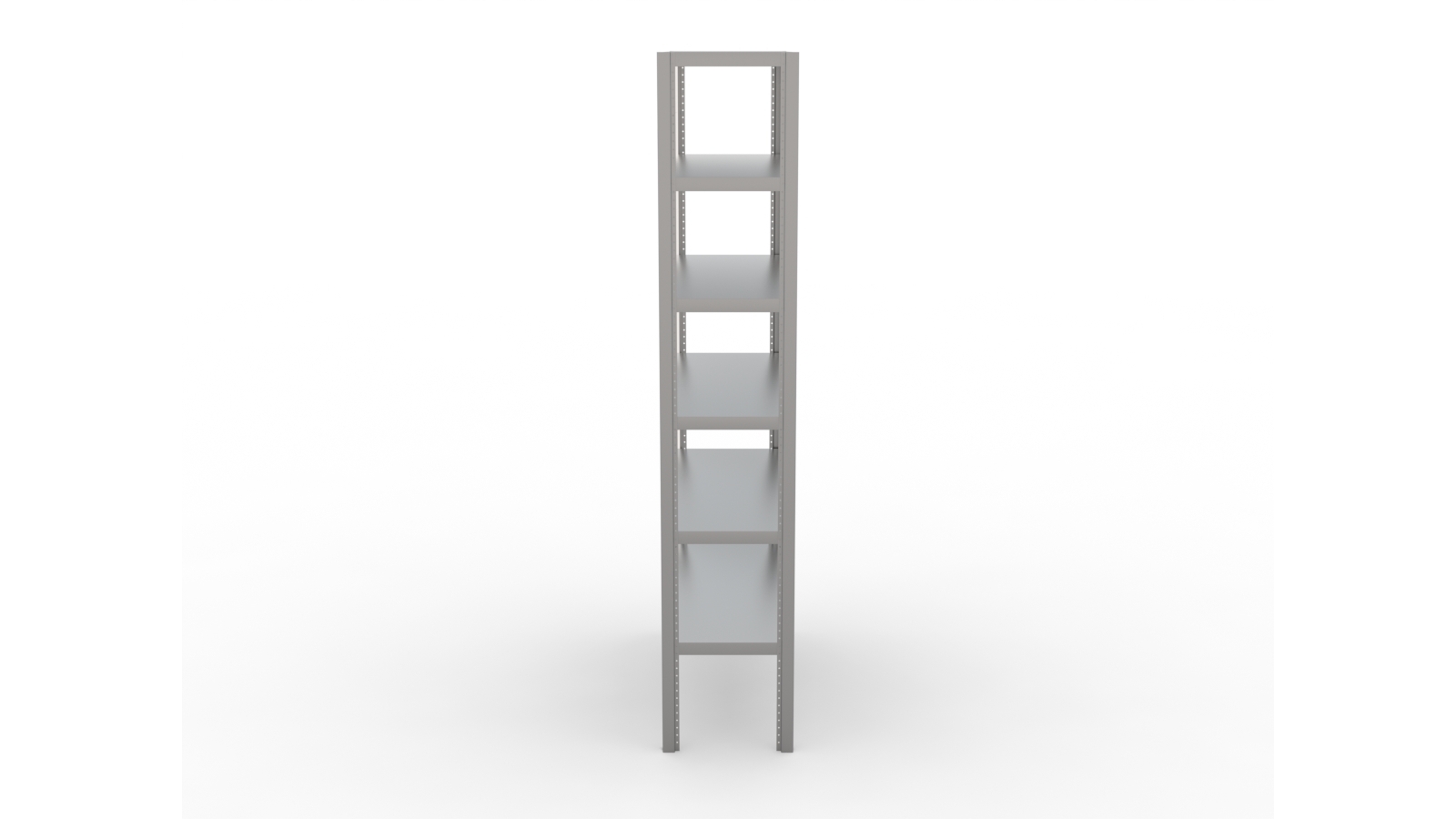 O Modelo PLC é estruturado com cantoneiras modulares de design exclusivo, reduzindo custos de transporte, além de proporcionar um visual mais leve ao ambiente. A cantoneira possui furação em todo seu perfil proporcionando liberdade de regulagem das alturas das prateleiras, que acompanham parafusos em aço inox.
