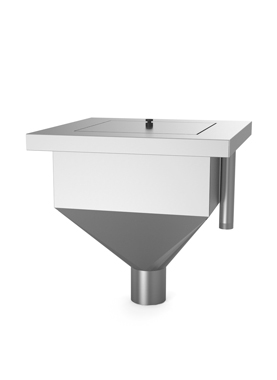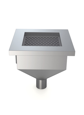 Expurgo quadrado econômico simples para aplicação em bancadas. Fabricado totalmente em aço inox AISI 304, chapa 1mm #20, acabamento escovado. Possui tampa e grade removíveis.