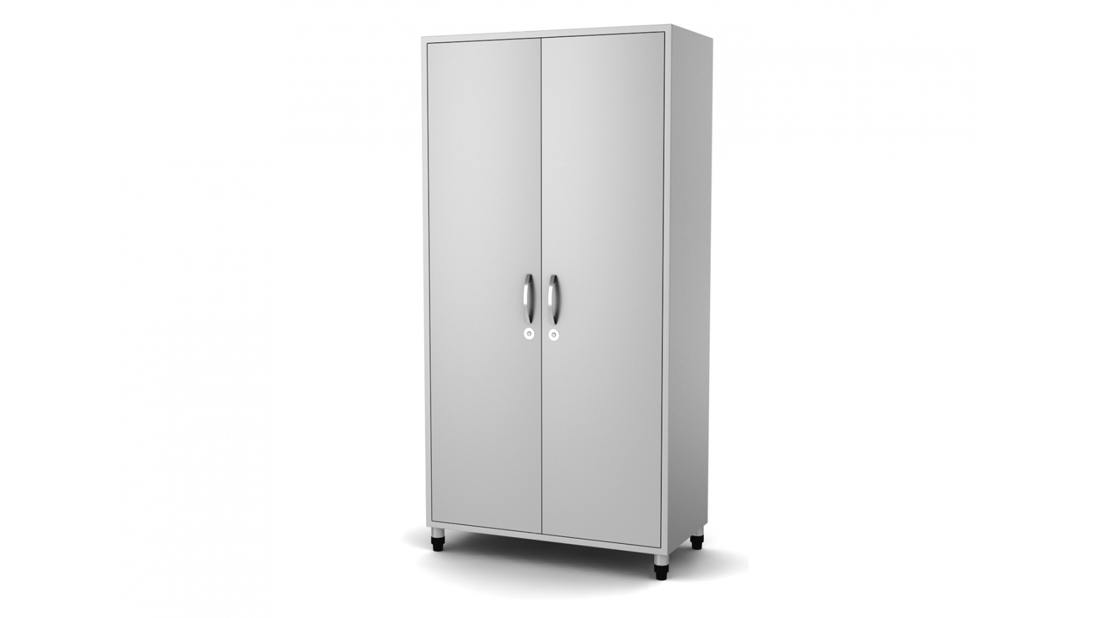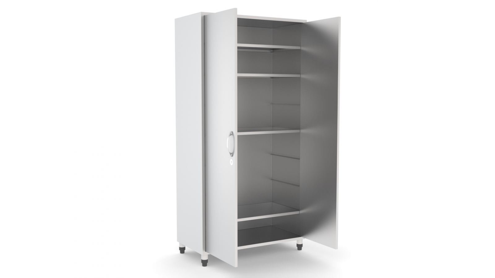 Fabricado em aço inoxidável AISI 304, com chapa de 1,2mm #18, acabamento escovado, com portas em folha dupla de aço inox com núcleo em poliuretano. Dotada de 04 prateleiras reguláveis e chaves para fechamento. Pés em tubos de 1 1/2 com sapatas reguláveis de polietileno.