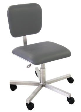Fabricada em aço inox AISI 304, conforme normas GMP. Assento e encosto estofado com espuma de alta durabilidade em espuma 100% poliuretano D45 e forração em courino. Possui amortecimento a gás, acabamento escovado, altura do assento e distância do encosto reguláveis.