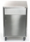 Fabricada em aço inox AISI 304, acabamento escovado. Chapa de 1mm. Tampa superior basculante. Compartimento inferior para acondicionamento de cesto plástico (não incluso).