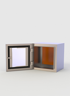 null A Caixa para Painel Elétrico Palmetal | Modelo V012 é um produto que foi desenvolvido e testado ao longo de vários anos. Possui grau de proteção IP-66 contra poeira e jatos fortes de água. Por padrão, ela vem com fecho simples, mas pode, sob encomenda, ser fabricada com fecho de segredo. O modelo possui opção de visor em policarbonato para maior facilidade de manutenção.