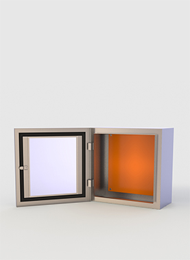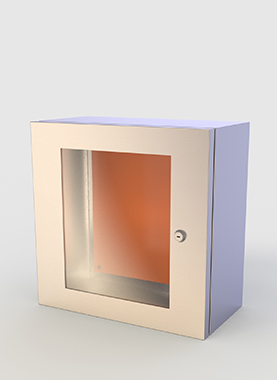 null A Caixa para Painel Elétrico Palmetal | Modelo V041 é um produto que foi desenvolvido e testado ao longo de vários anos. Possui grau de proteção IP-66 contra poeira e jatos fortes de água. Por padrão, ela vem com fecho simples, mas pode, sob encomenda, ser fabricada com fecho de segredo. O modelo possui opção de visor em policarbonato para maior facilidade de manutenção.