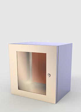 null A Caixa para Painel Elétrico Palmetal | Modelo V043 é um produto que foi desenvolvido e testado ao longo de vários anos. Possui grau de proteção IP-66 contra poeira e jatos fortes de água. Por padrão, ela vem com fecho simples, mas pode, sob encomenda, ser fabricada com fecho de segredo. O modelo possui opção de visor em policarbonato para maior facilidade de manutenção.