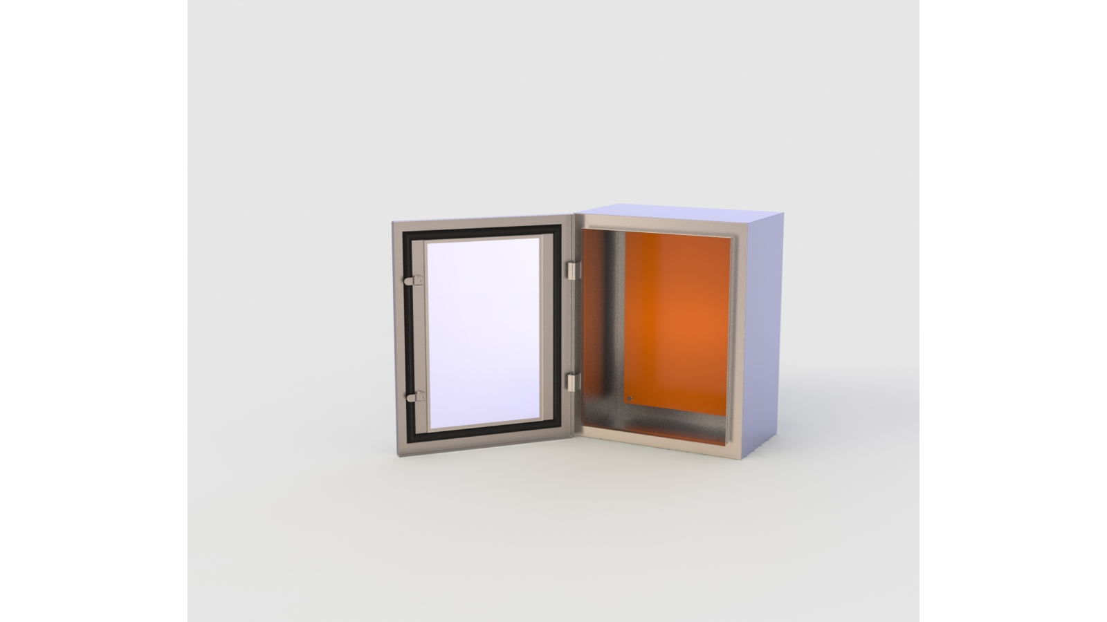 Fechamento através de dois (02) fechos moeda simples, com abertura por chave ou fenda. Utilização de borracha em PU para vedação da porta.
