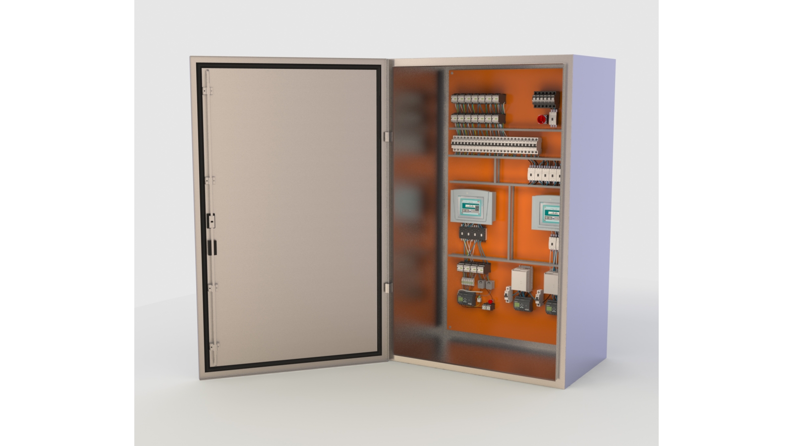 Temos milhares dessas caixas em operações nas mais diversas indústrias do Brasil, das grandes às pequenas, sempre com satisfação completa dos clientes. Fechamento através de um fecho cremona.