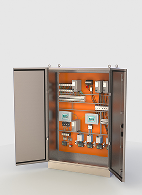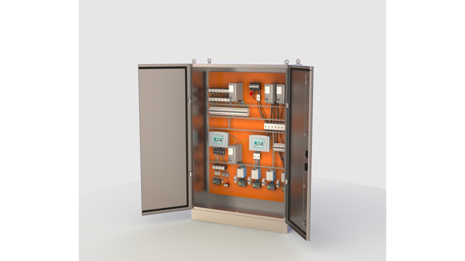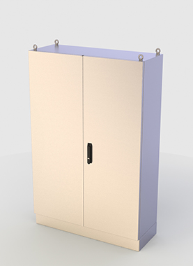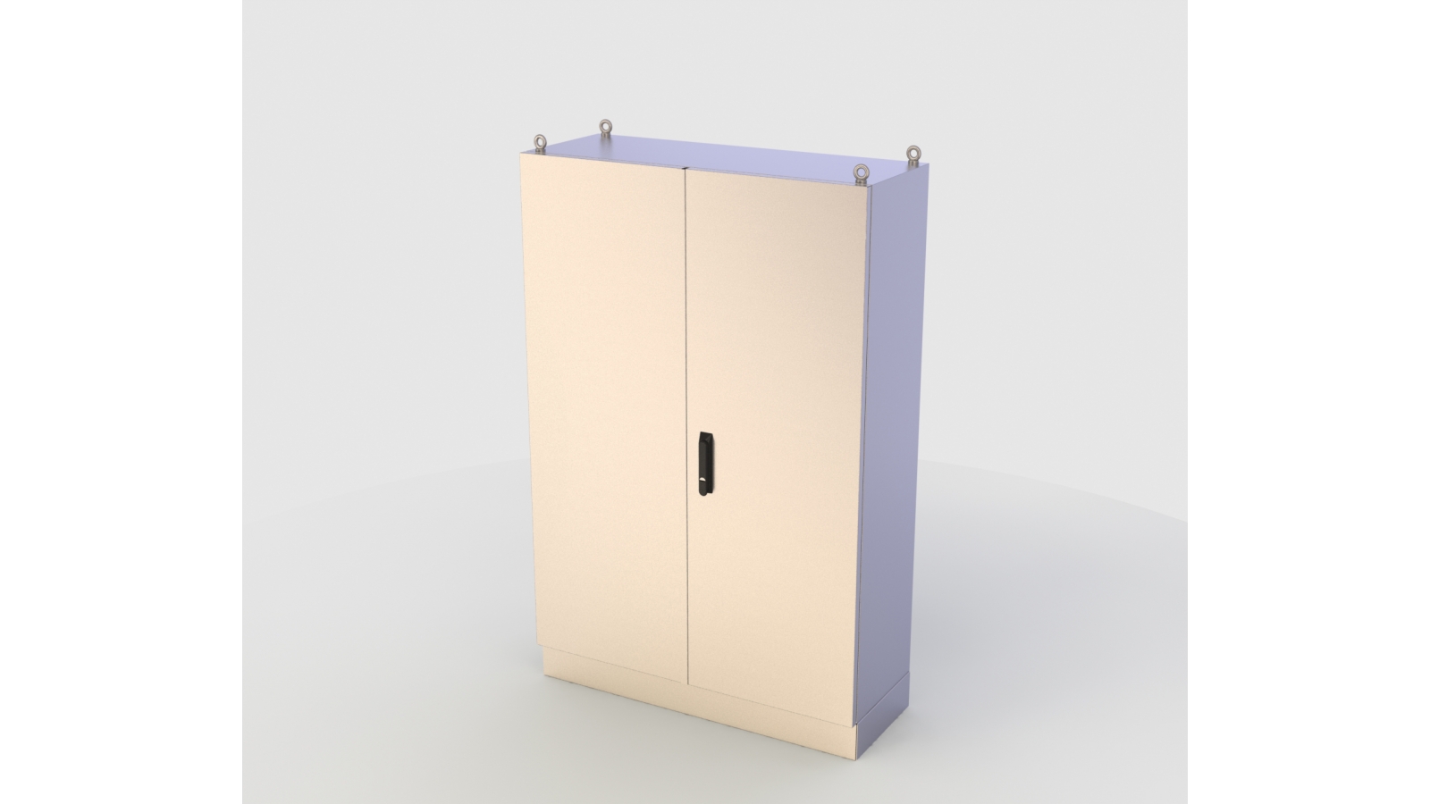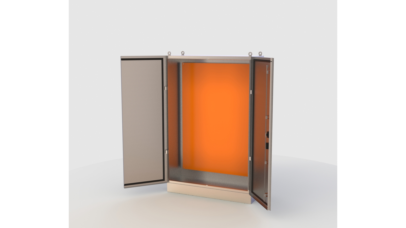 Modelo com 02 portas. Equipado com soleira de 100mm e 04 olhais de aço inox para içamento da caixa. Modelo com trilho de aço inox para posicionamento adequado da placa de montagem. Modelo P210