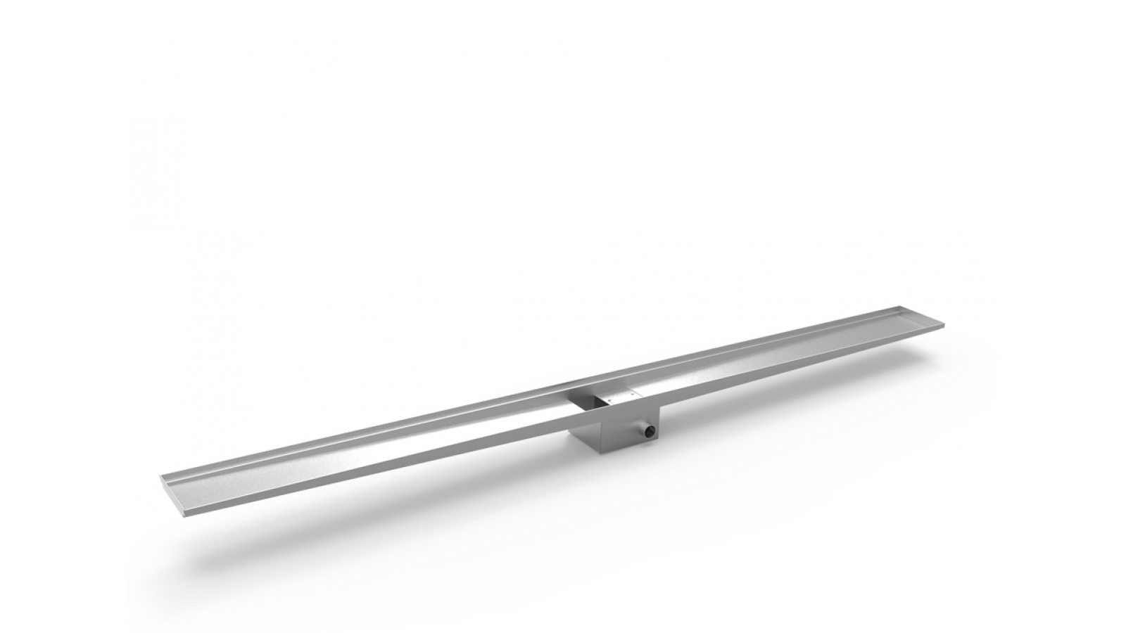 Calha de Escoamento fabricada em aço inoxidável AISI 304, com acabamento escovado. Base feita em chapa de 2,0mm (#14). Com caimento para o reservatório central. Dotada de mecanismo de sifonamento e saída lateral com tubo schedule de 1 1/4. Grelha não inclusa. Largura de 200mm.