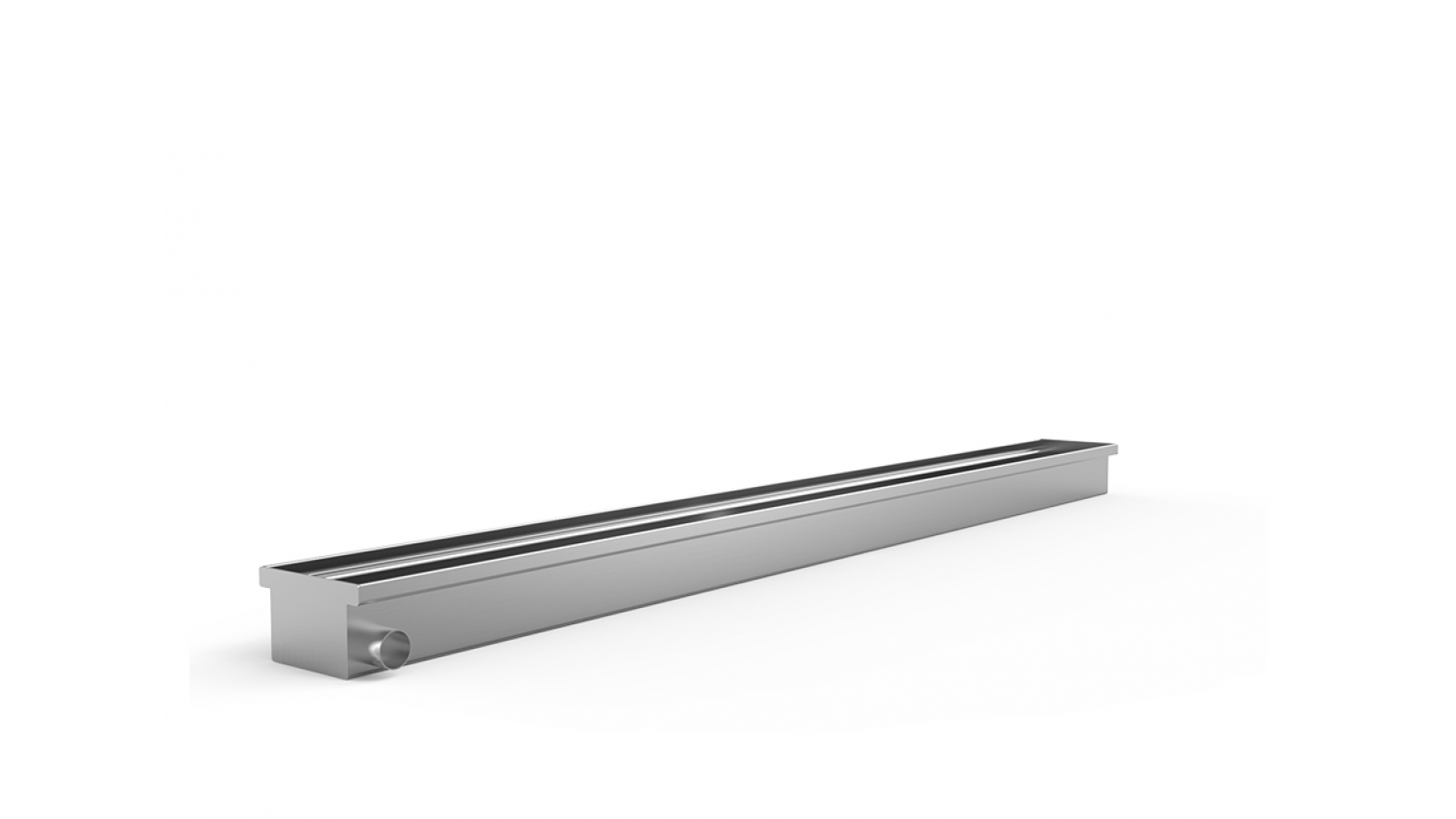 Calha de escoamento fabricada em aço inoxidável AISI 304, com acabamento escovado. Base feita em chapa de 1,2mm (#18), largura de 130mm e 77mm de altura. Quatro direções de saída pra esgoto: na extremidade, na lateral esquerda, direita, e por baixo, com opções de posicionamento. Saída em tubo SCH 40 1 1/4 X 25mm de comprimento. Calha usada em conjunto com Grelha Palmetal. Grelha não inclusa.