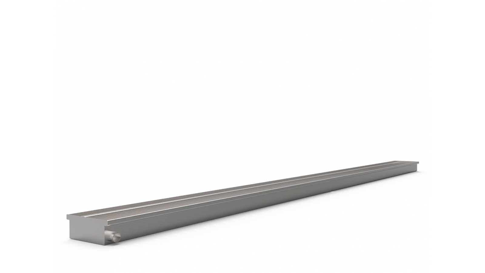 Calha de escoamento fabricada em aço inoxidável AISI 304, com acabamento escovado. Base feita em chapa de 1,2mm (#18), largura de 200mm e 77mm de altura. Saída em tubo SCH 40 1" 1/4 X 25mm de comprimento. Calha usada em conjunto com a Grelha Palm