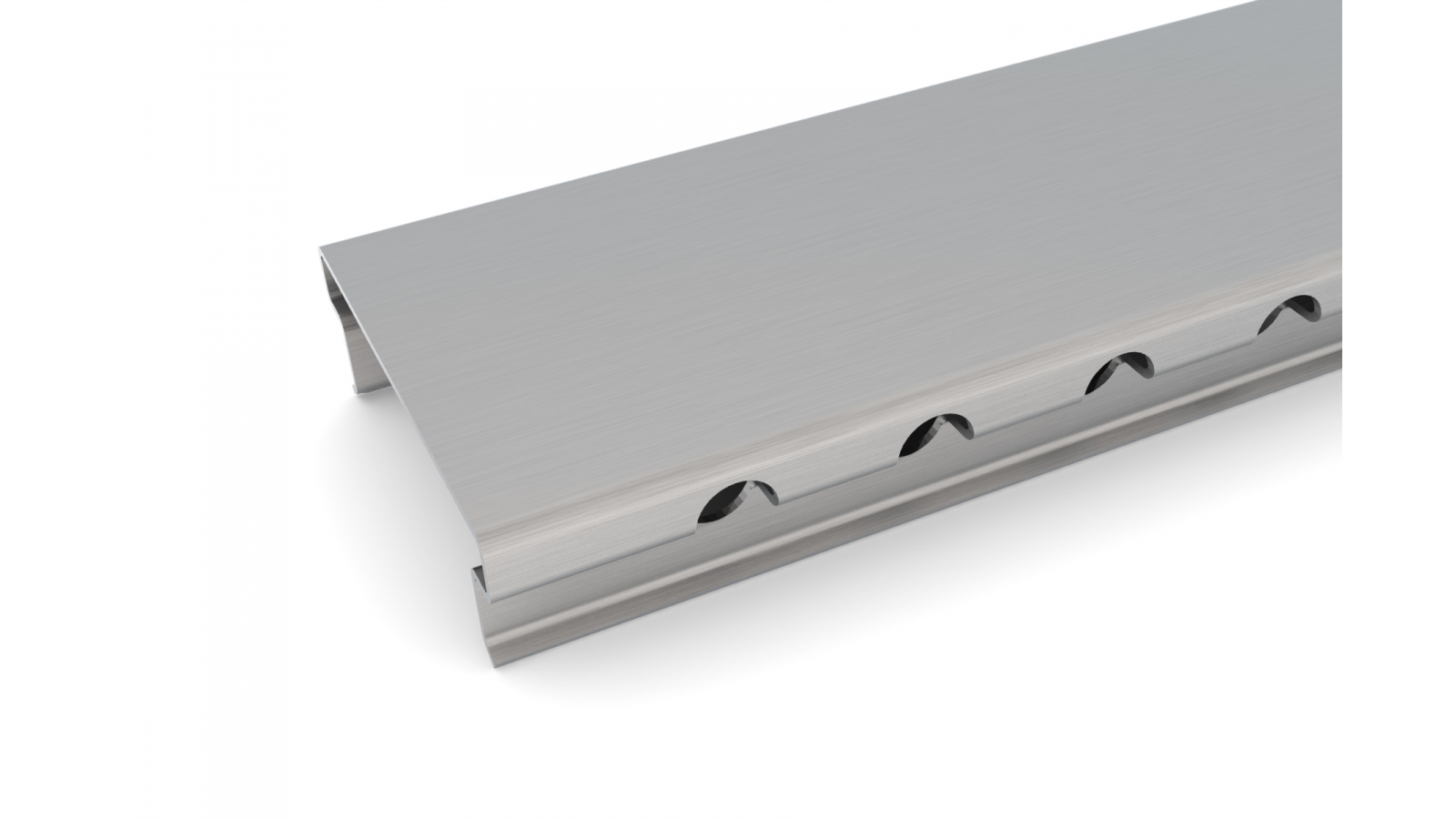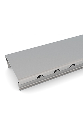 A Grelha Palmetal | Modelo LIS possui um design diferenciado e é uma excelente opção em termos de ralos lineares. O Modelo LIS foi desenvolvido primeiramente para uso em laboratórios ou hospitais por esconder a sujidade e ser de fácil limpeza, uma vez que é lisa sem o perfuração dos modelos normais. O escoamento acontece pelo espaço entre a calha e a grelha