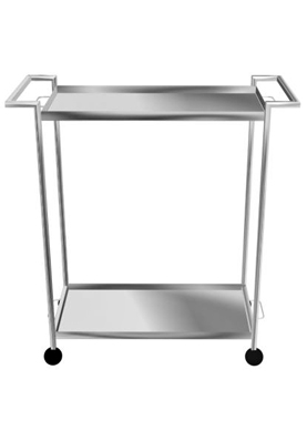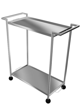 Fabricada em aço inox AISI 304, tubo 25 x 25 mm, chapa 1mm e rodízios de inox com rodas de silicone de 3. Altura fixa de 900mm. Acabamento escovado.