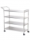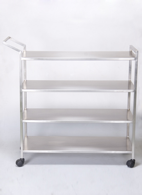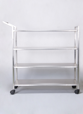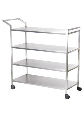 Fabricada em aço inox AISI 304, tubo 20 x 20 mm, chapa 1mm e rodízios de inox com rodas de silicone de 3. Altura fixa de 900mm. Acabamento escovado.