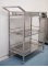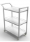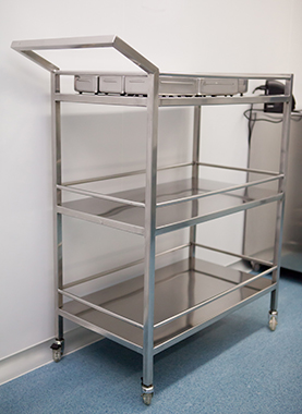 Fabricada em aço inox AISI 304, tubo 20 x 20 mm, chapa 1mm e rodízios de inox com rodas de silicone de 3. Altura fixa de 900mm. Acabamento escovado.