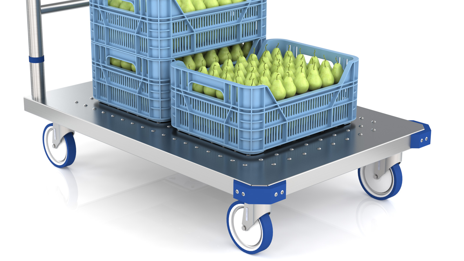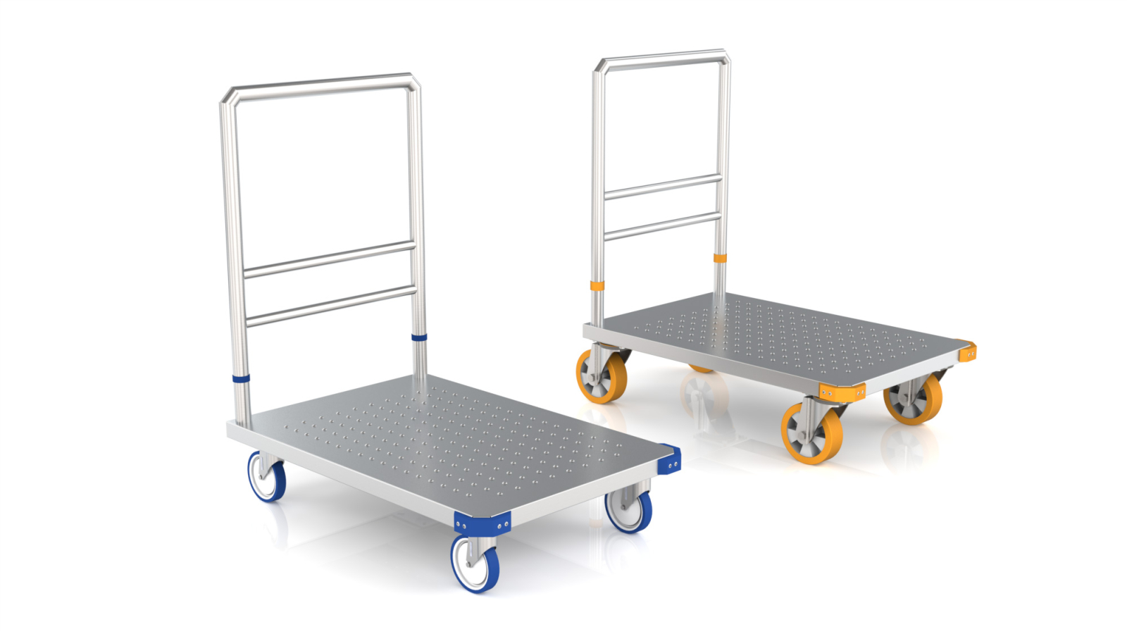 Esse móvel foi desenvolvido para empresas de alto padrão que precisam transportar produtos de qualidade em seus ambientes internos sobre pisos industriais.