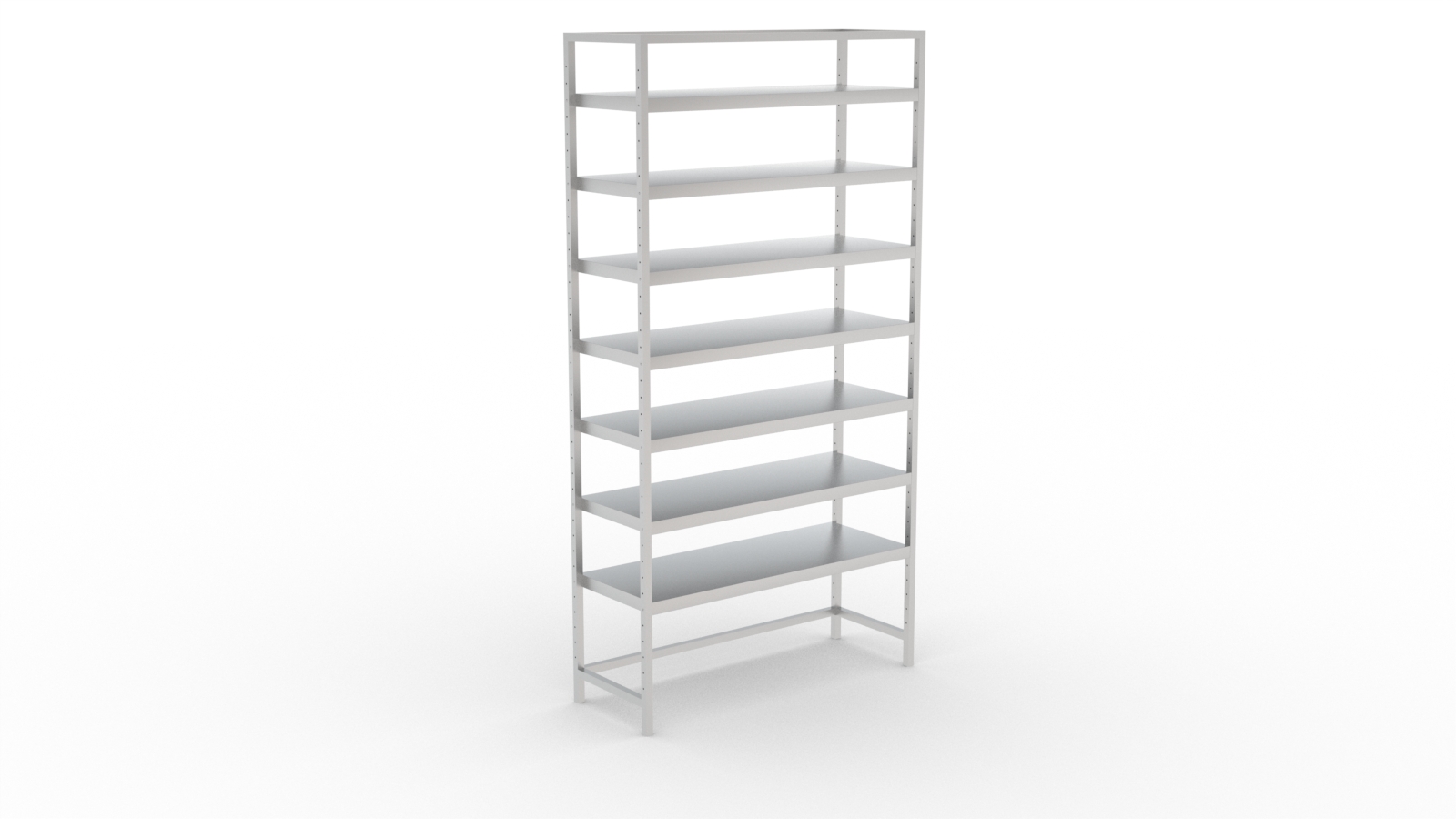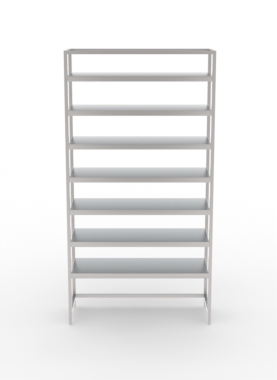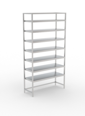 O Modelo PLT possui uma estrutura tubular fixa, altamente resistente e que facilitam sua instalação. A Estrutura possui furação bem distribuída, proporcionando liberdade total de regulagem das alturas das prateleiras, que acompanham parafusos em aço inox.
