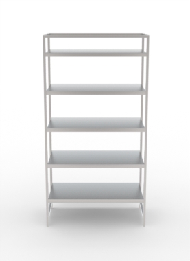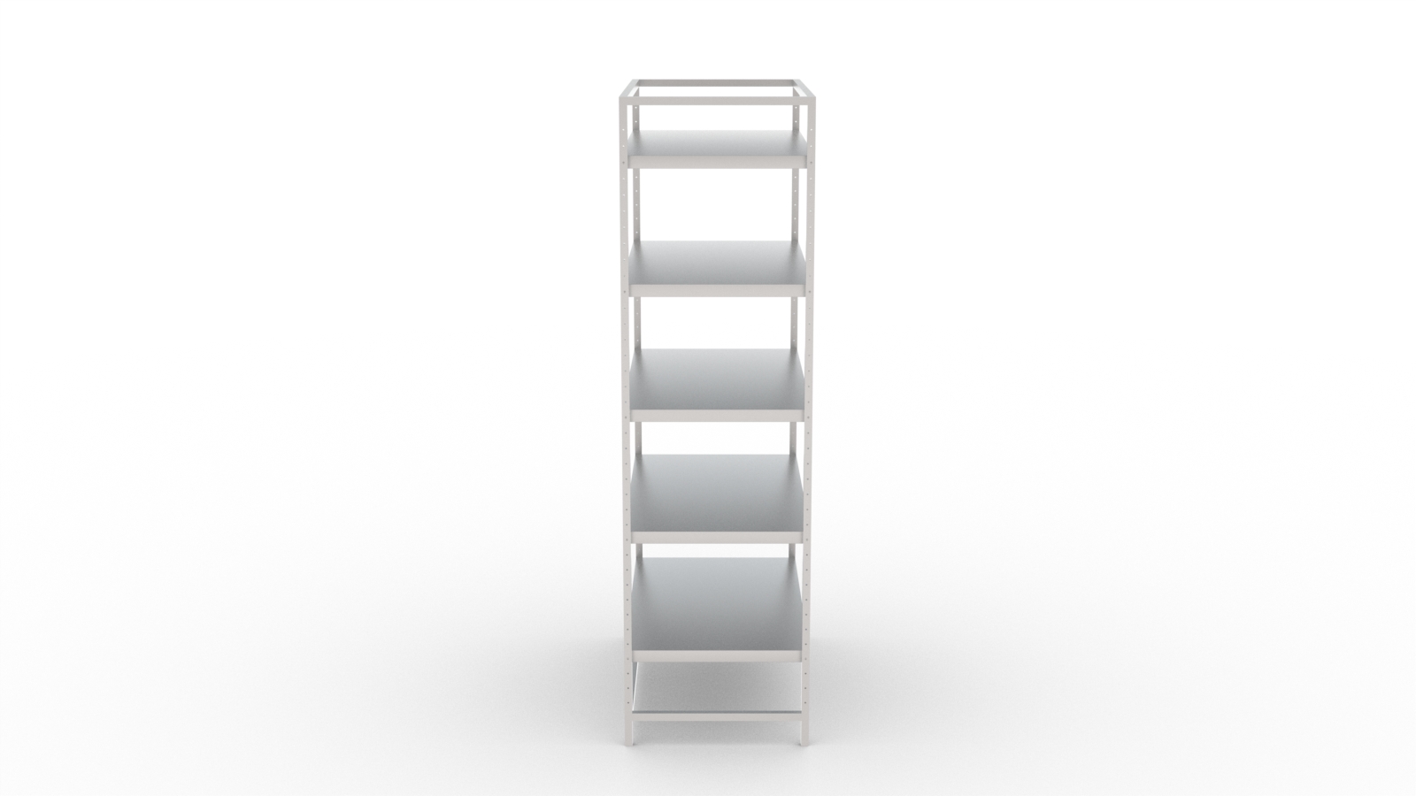 O Modelo PLT possui uma estrutura tubular fixa, altamente resistente e que facilitam sua instalação. A Estrutura possui furação bem distribuída, proporcionando liberdade total de regulagem das alturas das prateleiras, que acompanham parafusos em aço inox.