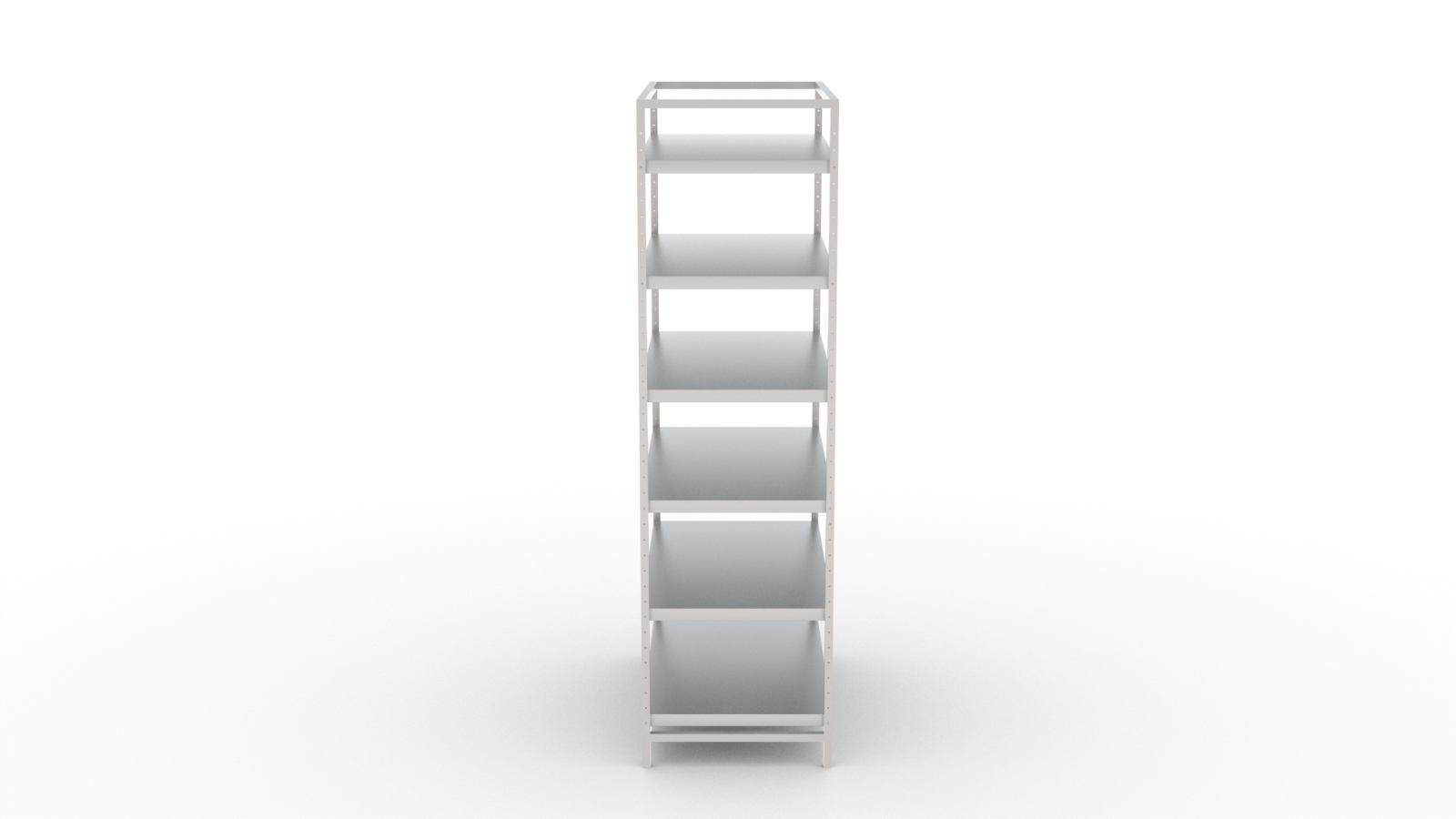 A Estante PLT possui prateleiras lisas e reforçadas com um perfil triangular em sua parte inferior, garantindo sua alta resistência, e fácil higienização e acondicionamento de produtos de diversos tamanhos. Diferente de outras opções no mercado, a Palmetal garante que sua prateleira permanecerá íntegra durante anos sem formar barriga (flambagem) .