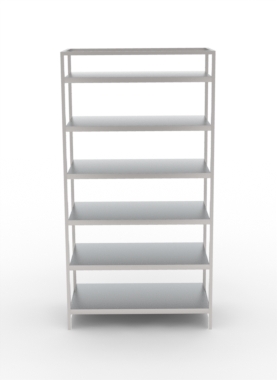 O Modelo PLT possui uma estrutura tubular fixa, altamente resistente e que facilitam sua instalação. A Estrutura possui furação bem distribuída, proporcionando liberdade total de regulagem das alturas das prateleiras, que acompanham parafusos em aço inox.