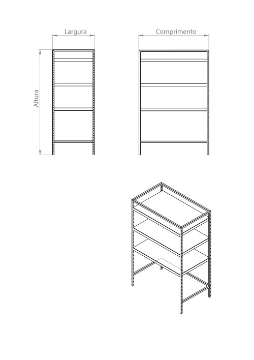 Estrutura ResistenteO Modelo PLT possui uma estrutura tubular fixa, altamente resistente e que facilitam sua instalação. A Estrutura possui furação bem distribuída, proporcionando liberdade total de regulagem das alturas das prateleiras, que acompanham parafusos em aço inox.