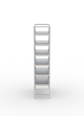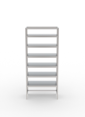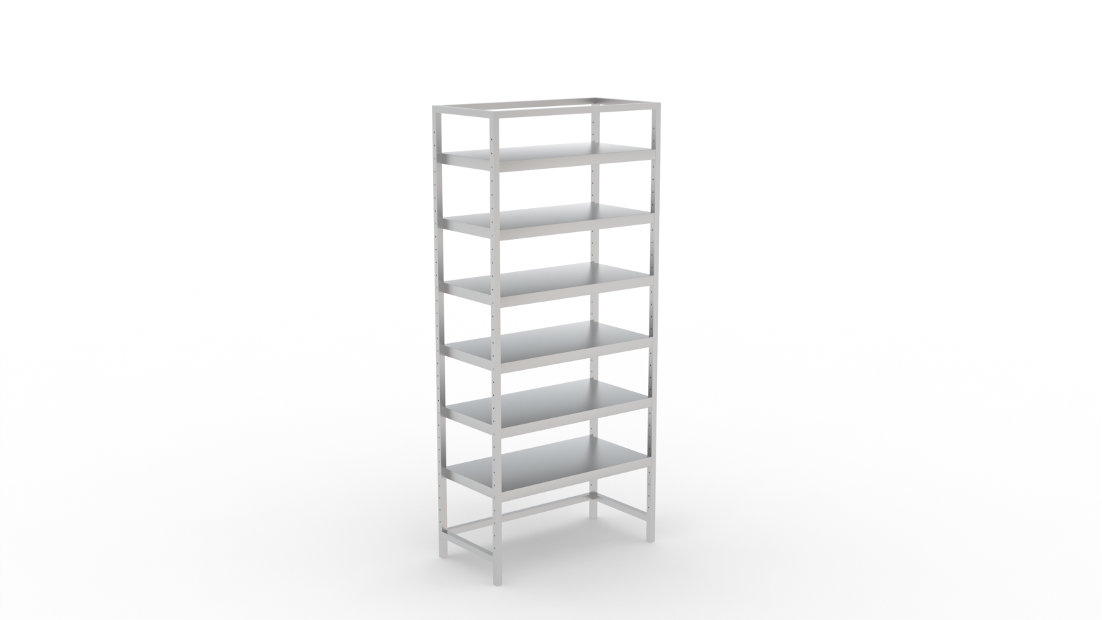 O Modelo PLT possui uma estrutura tubular fixa, altamente resistente e que facilitam sua instalação. A Estrutura possui furação bem distribuída, proporcionando liberdade total de regulagem das alturas das prateleiras, que acompanham parafusos em aço inox.
