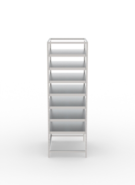 O Modelo PLT possui uma estrutura tubular fixa, altamente resistente e que facilitam sua instalação. A Estrutura possui furação bem distribuída, proporcionando liberdade total de regulagem das alturas das prateleiras, que acompanham parafusos em aço inox.