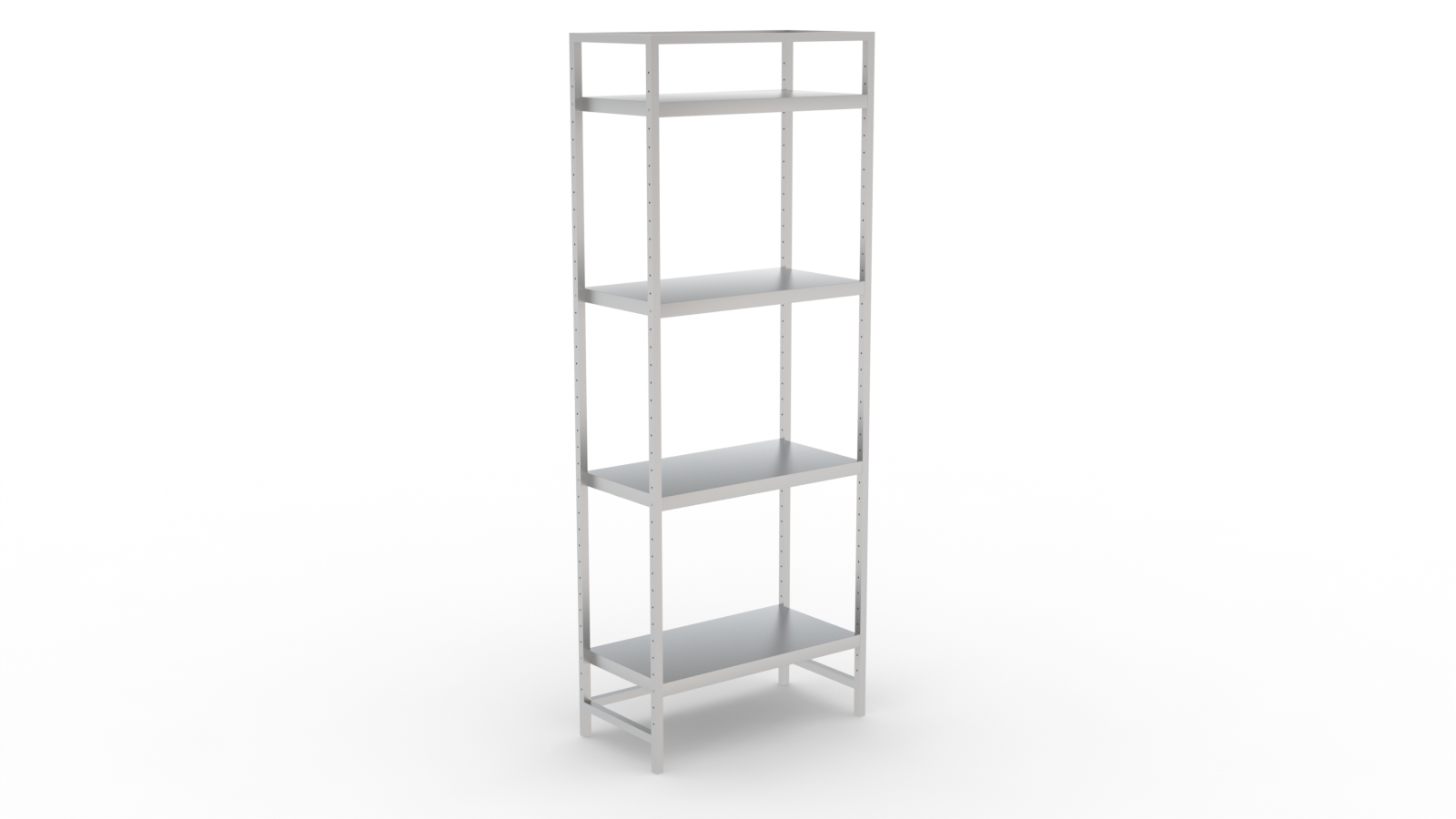 O Modelo PLT possui uma estrutura tubular fixa, altamente resistente e que facilitam sua instalação. A Estrutura possui furação bem distribuída, proporcionando liberdade total de regulagem das alturas das prateleiras, que acompanham parafusos em aço inox.