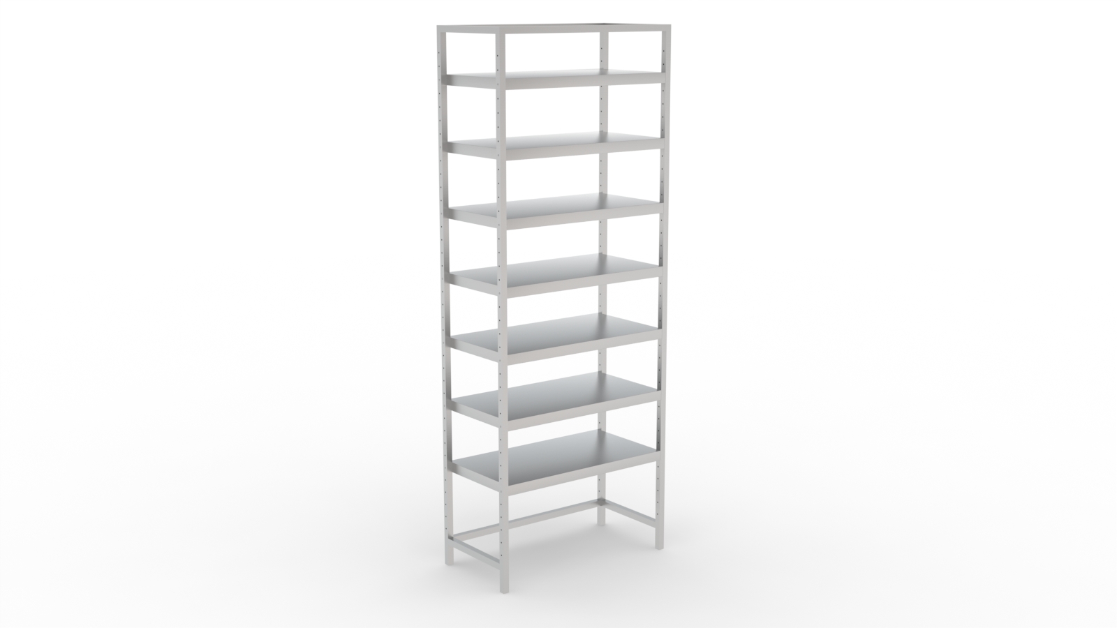O Modelo PLT possui uma estrutura tubular fixa, altamente resistente e que facilitam sua instalação. A Estrutura possui furação bem distribuída, proporcionando liberdade total de regulagem das alturas das prateleiras, que acompanham parafusos em aço inox.