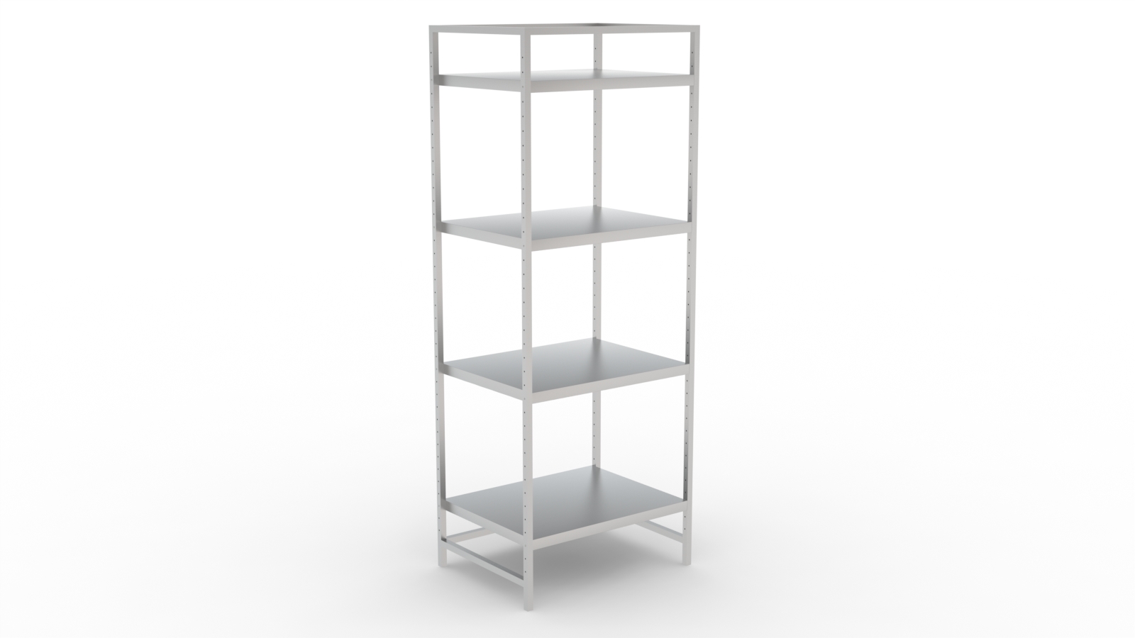 O Modelo PLT possui uma estrutura tubular fixa, altamente resistente e que facilitam sua instalação. A Estrutura possui furação bem distribuída, proporcionando liberdade total de regulagem das alturas das prateleiras, que acompanham parafusos em aço inox.
