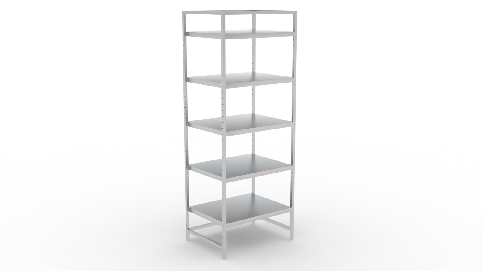 O Modelo PLT possui uma estrutura tubular fixa, altamente resistente e que facilitam sua instalação. A Estrutura possui furação bem distribuída, proporcionando liberdade total de regulagem das alturas das prateleiras, que acompanham parafusos em aço inox.