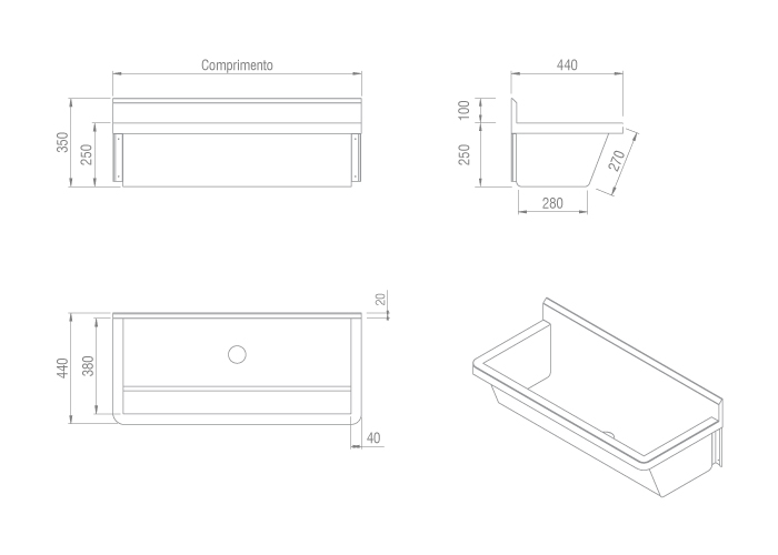 Design O Lavatório Palmetal | Modelo Padrão é o modelo mais vendido por ser compacto e versátil. Seu design é bastante arquitetônico e seu aspecto mais requintado traz leveza para o ambiente, possui laterais e fundo arredondados que garantem segurança e fácil higienização. Ele possui chapa com espessura de 1 mm, é amplo, resistente e seu frontispício chanfrado superior protege contra leves respingos de água e completa o acabamento da peça.