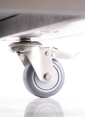 Rodízios Schioppa INOX de 3" giratórios - dois com freio dois sem freio - corpo de inox e roda de borracha macia.