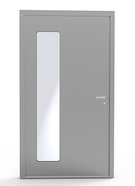 Modelo fabricado em aço inoxidável AISI 304, chapa 1,0 mm. Marco chapa 1,5 mm. Porta preenchida com poliuretano. Visor de policarbonato 6 mm. Inclui maçaneta, fechadura e dobradiça. Altura: 2100 mm. Largura: Existem 3 medidas disponíveis, são elas 700, 800 e 900 mm. Garantia: 10 (dez) anos em nossa fábrica .
