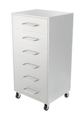 Modelos com seis gavetas, para quem tem espaço e precisa de organização. Facilita a assepsia do ambiente. As gavetas são fabricadas com corrediças telescópicas, permitindo sua completa abertura e são bem mais resistentes ao peso do que as corrediças comuns.
